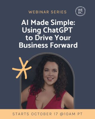 WeBC has partnered with Jennifer Hufnagel, a leading AI Educator from Hufnagel Consulting, to offer a fun and practical workshop series designed to demystify ChatGPT and help you understand how this powerful tool can work for you, no matter your tech level.