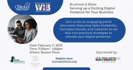 Join The Chamber (Penticton and Wine Country) and Penticton Women in Business for an engaging panel discussion featuring Sales Scalability, Concepta Socials, and Castanet as we dive into practical strategies to elevate your digital presence.