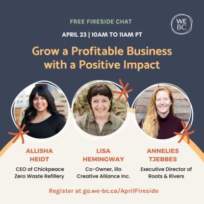 Introducing our new Fireside Chats! These are free, virtual sessions that explore different aspects of scaling a business by sharing the growth journeys, knowledge and experiences of BC women.