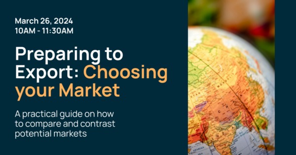 Discover the process of market comparison in this focused webinar. The first in its series, Preparing to Export, “Choosing your Market”, will put you on the right path to deciding where to take your business next. This session, ideal for entrepreneurs and leaders of global expansion alike, provides practical tools and expert advice for informed decision-making in choosing the right market.
