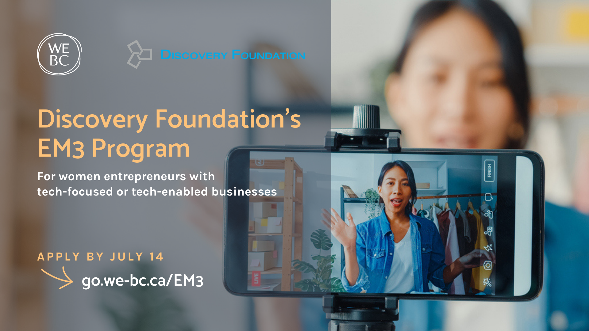 Discovery Foundation’s EM3 Program presented by WeBC is designed to support women entrepreneurs in the first five years of business as they build and grow their tech-focused or tech-enabled businesses.