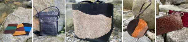 I design and sew handbags and accessories made from sustainable materials like fish leather and cork.